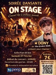Spectacle musical dansant et dynamique avec la troupe On Stage, le chanteur Dony et des choristes.