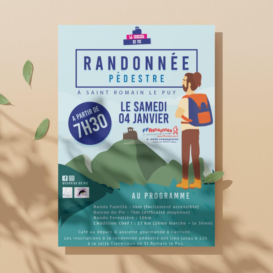 Pour cette nouvelle année, je vous propose dans le cadre de la corrida du pic, Samedi 4 Janvier 2025 à 8h30, la « randonnée du pic » à Saint-Romain-le-Puy.